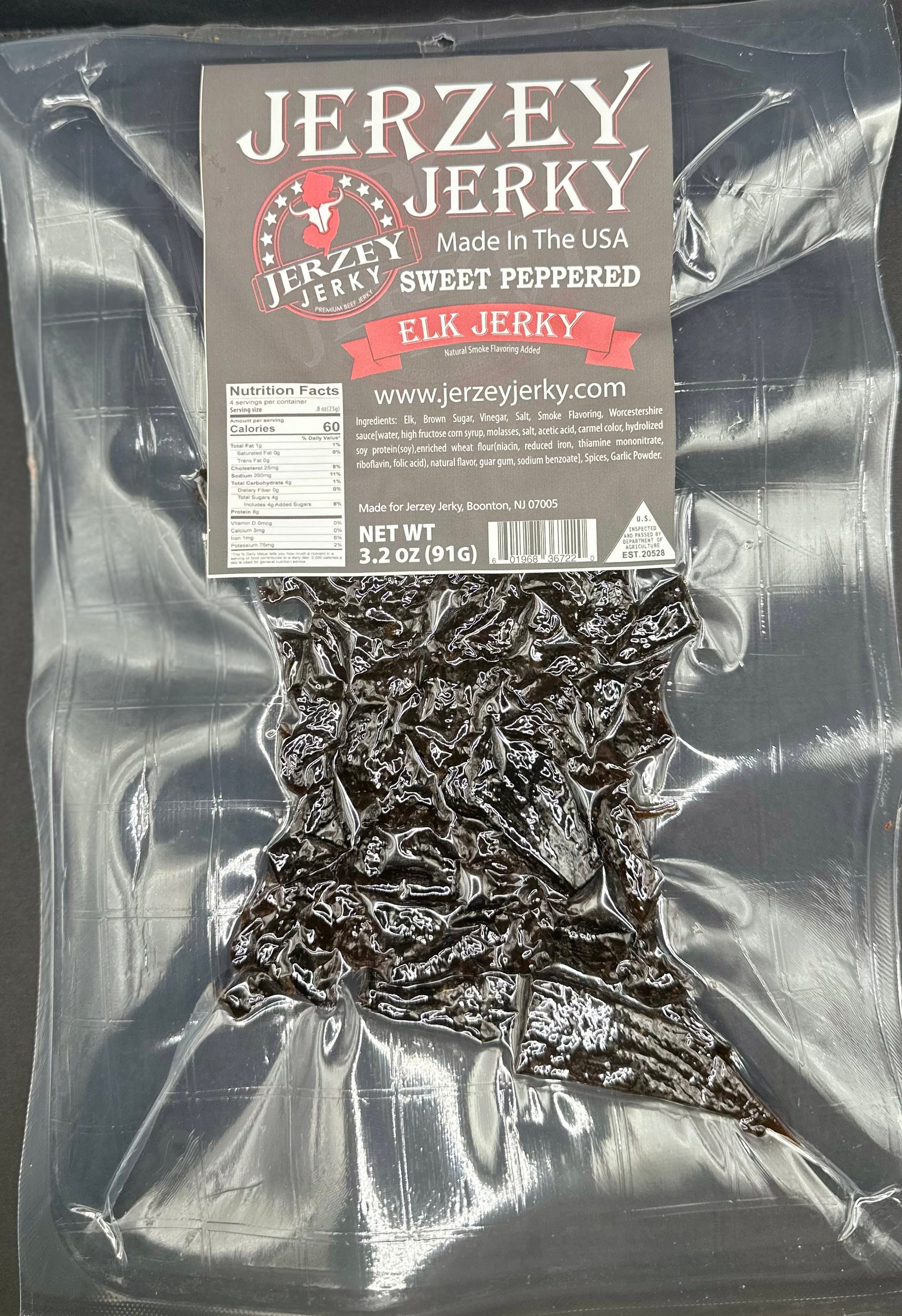 Elk Jerky Sweet Peppered: bold, balanced, and unmistakably wild—only from Jerzey Jerky.
