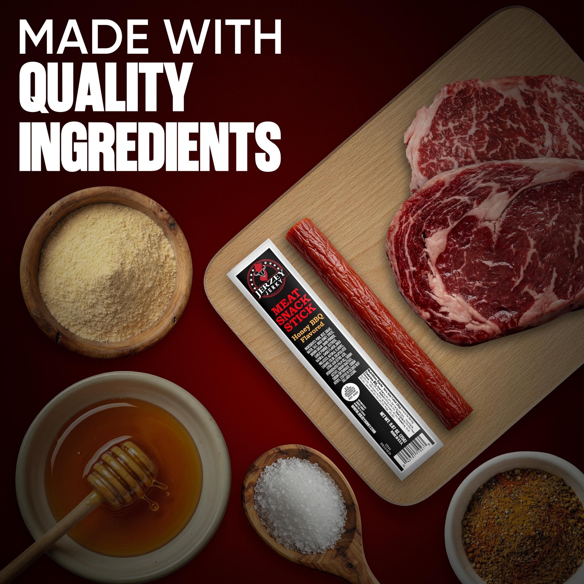Fuel your day with bold flavor and protein-packed energy. The Jerzey Jerky® Honey BBQ Meat Snack Stick delivers a rich, sweet honey taste with a tangy BBQ kick in a convenient, mess-free format designed for life on the go.