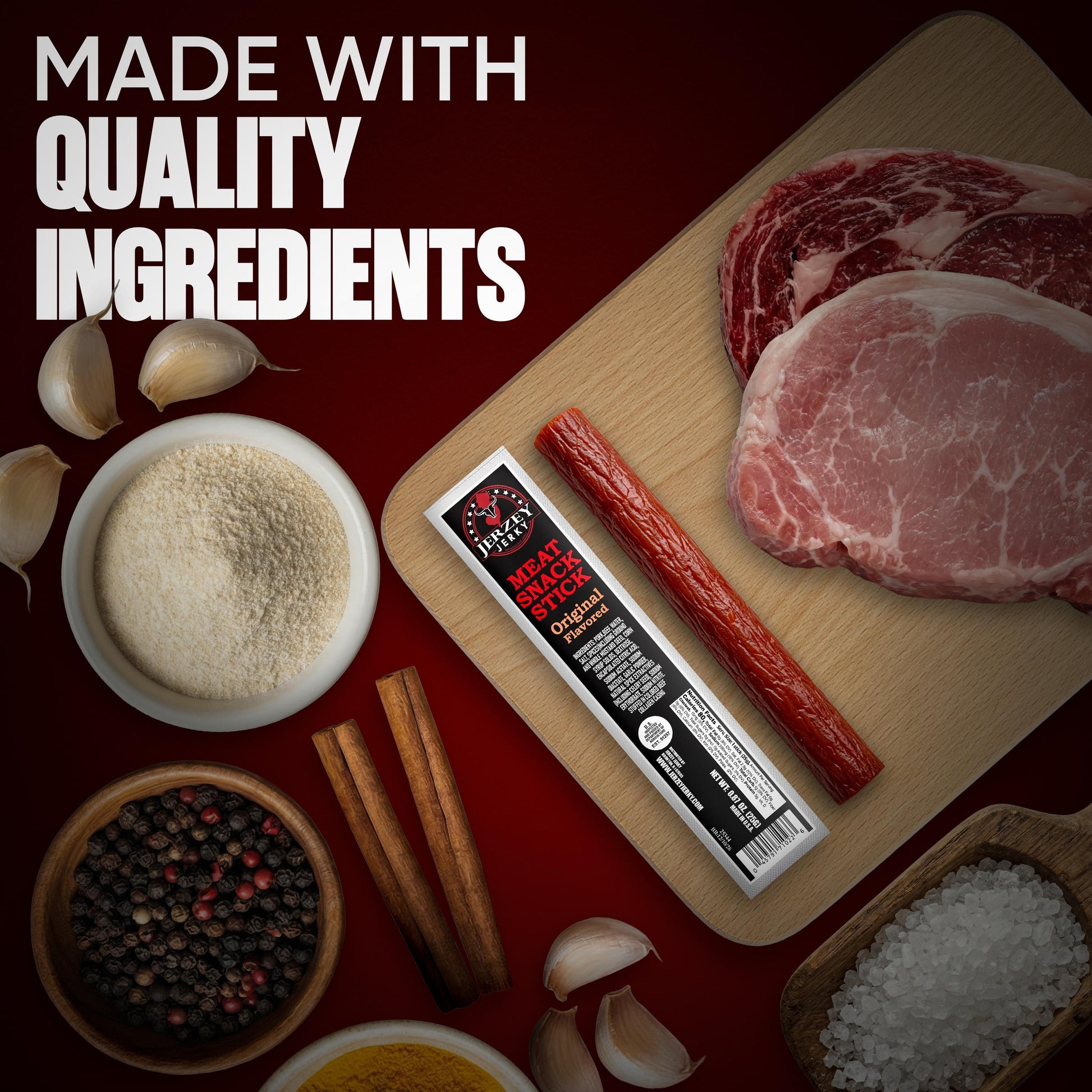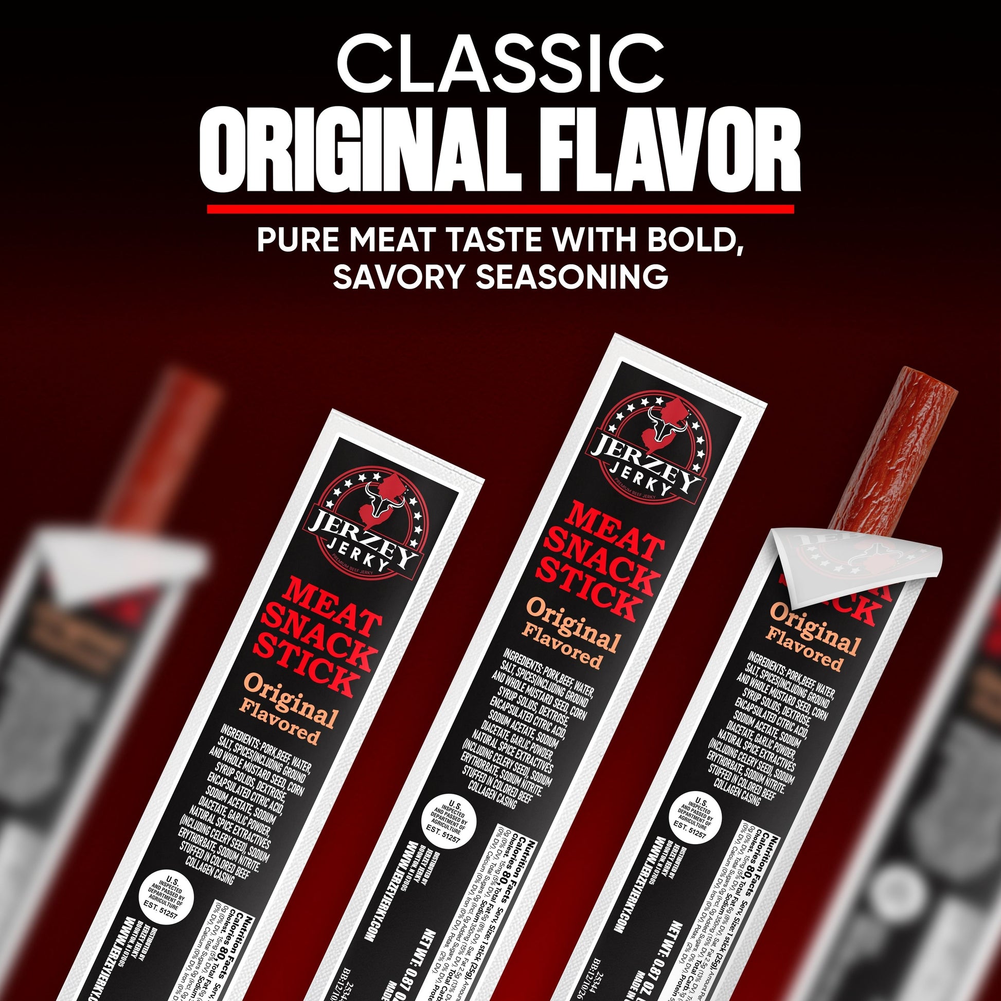 Fuel Your Active Lifestyle with JERZEY JERKY Original Meat Snack Sticks. Crafted for those who demand real flavor and quality nutrition, these snack sticks deliver pure meat taste with bold, savory seasoning in every bite. Whether you’re at work, traveling, hitting the gym, or exploring the great outdoors, these high-protein sticks are the perfect anytime snack to power your day.