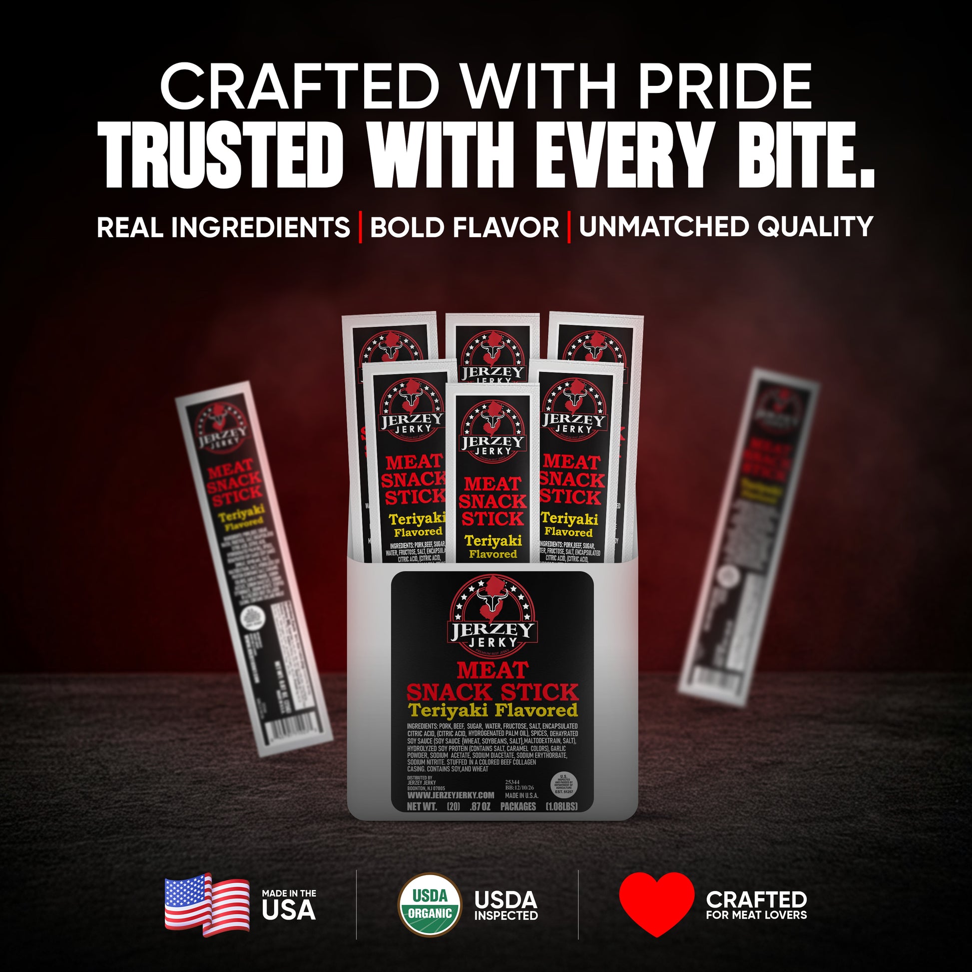 The Jerzey Jerky® Teriyaki Meat Snack Stick delivers a perfectly balanced sweet and savory teriyaki taste in a convenient, mess-free format designed for life on the go.
